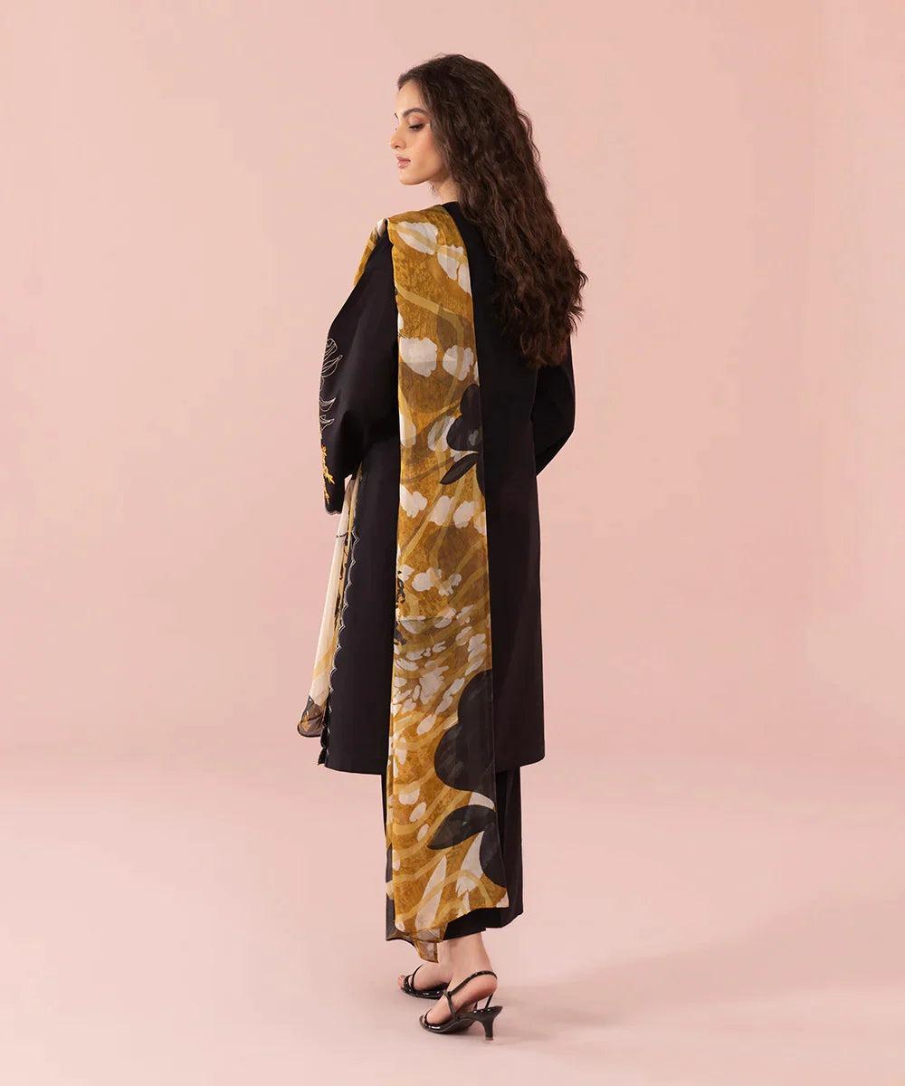 Premium Printed Dupatta (mustard & black fusion with artistic floral design)